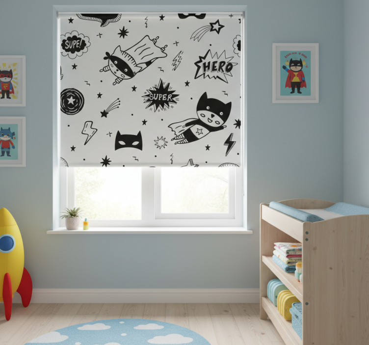 Rolgordijn kinderkamer superhelden strippatronen