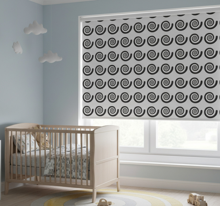 Rolgordijn kinderkamer zwart-wit hypnotische retro spiraal