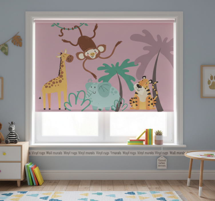 Referentienummer: E8856Rolgordijn paars met kleurrijke cartoon safari dieren