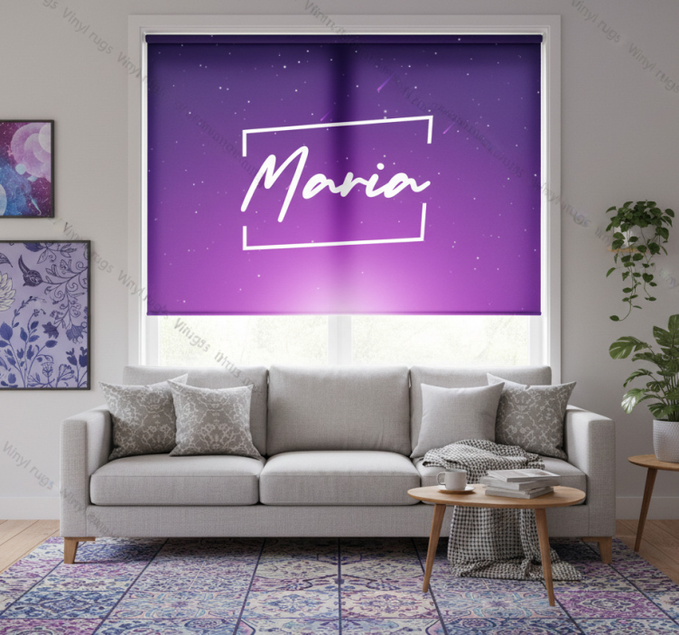 Het rolgordijn paars paarse galaxie met naam is perfect voor elke ruimte waar u een persoonlijke touch wilt toevoegen. Het biedt niet alleen functionaliteit, maar ook een artistieke flair die elke muur transformeert. Met zijn unieke ontwerp beschermt het uw kamer tegen direct zonlicht, terwijl het tegelijkertijd een gevoel van privacy biedt. Dit rolgordijn laat u genieten van een warme en gezellige ambiance, waardoor het ideaal is voor zowel woonkamers als slaapkamers. Maak van uw huis een thuis met deze prachtige decoratie!