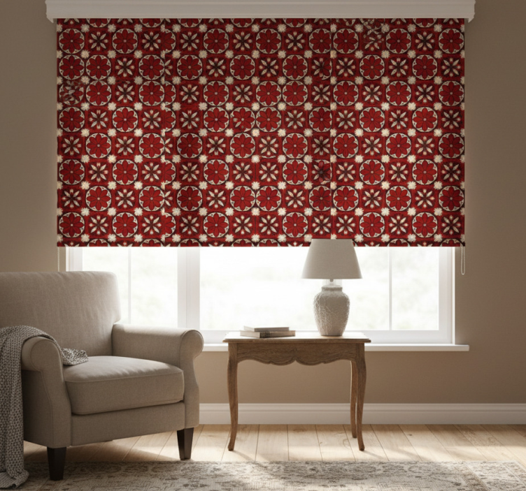 Referentienummer: E8831Rolgordijn rood met vintage tegelpatroon