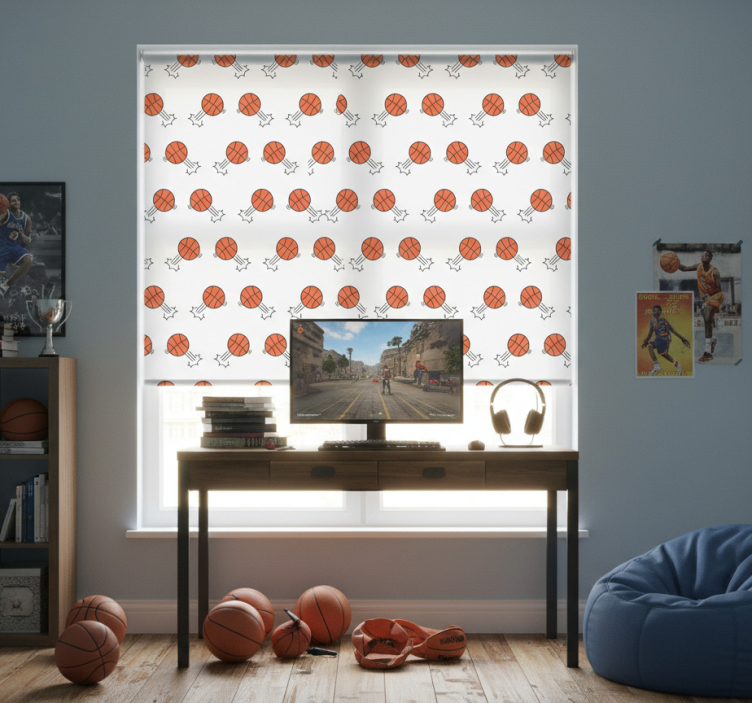 Rolgordijn tienerkamer achtergrond van handgetekende basketballen