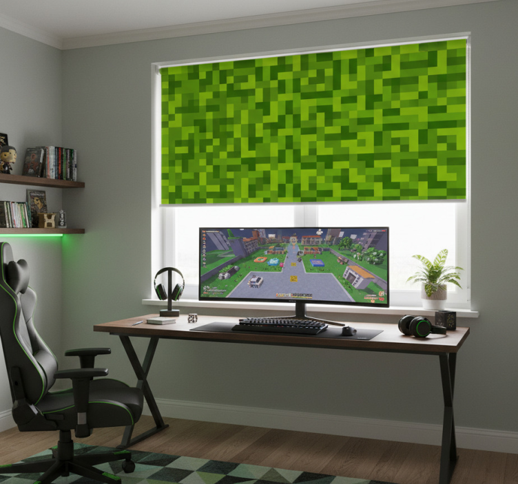 Rolgordijn tienerkamer groen vierkant gamingdesign