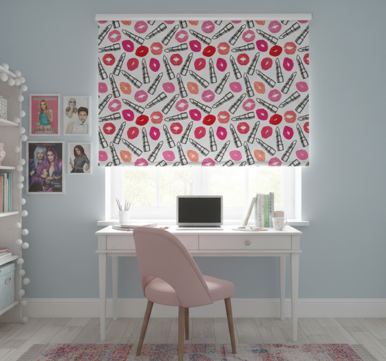 Rolgordijn tienerkamer lipsticks en lippen