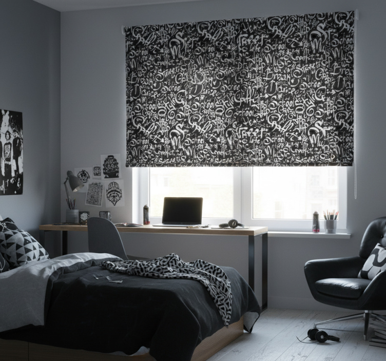 Rolgordijn tienerkamer met graffiti tags design