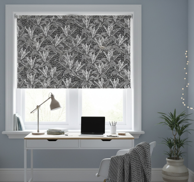 Rolgordijn tienerkamer met omtrek bladeren bloemenpatroon