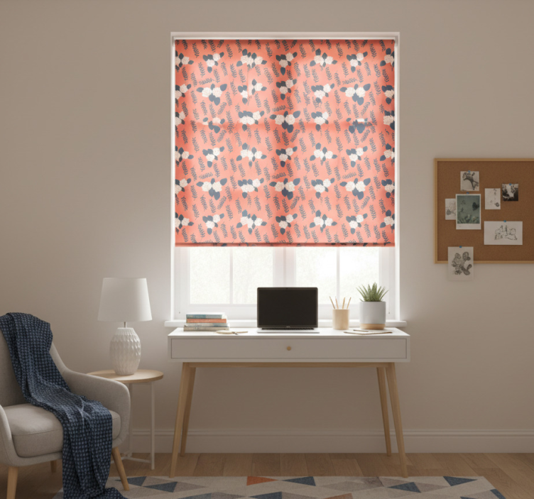 Rolgordijn tienerkamer oranje rozenillustratie bloemenpatroon