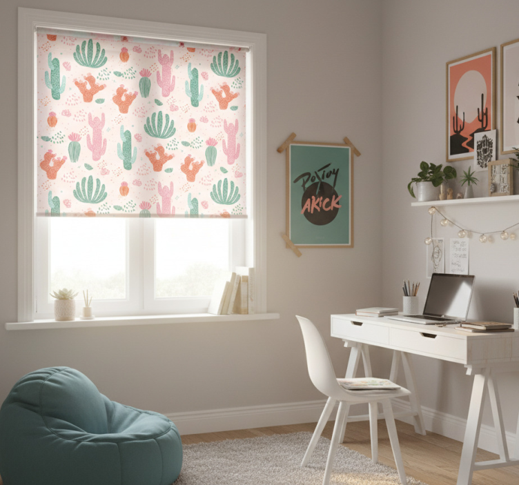 Rolgordijn tienerkamer retro gekleurd cactuspatroon