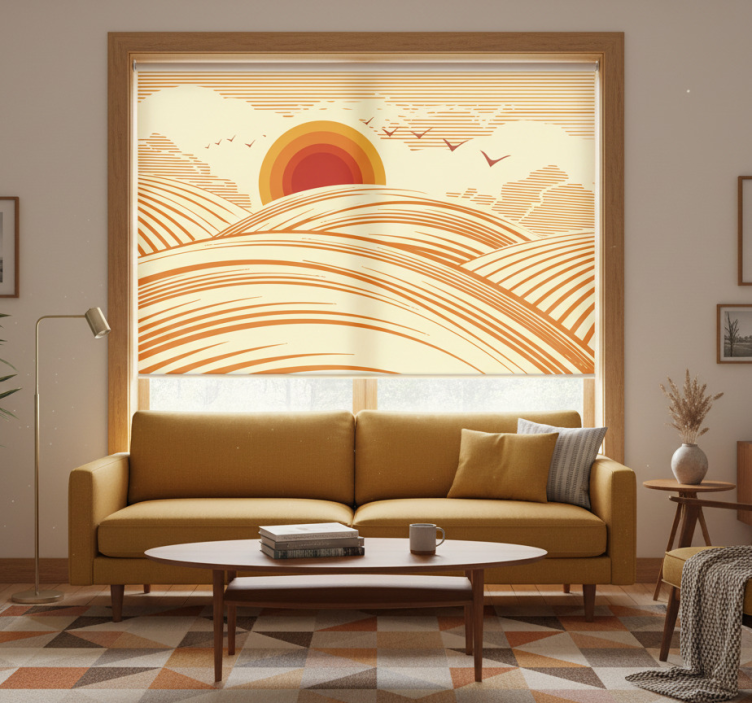 Het rolgordijn woonkamer 70's landschap brengt een retro charme in uw interieur met zijn levendige kleuren en unieke patronen. Dit grafische ontwerp, geïnspireerd door de jaren '70, voegt een speelse en artistieke flair toe aan uw woonruimte. Het prachtige landschap dat het rolgordijn siert, zorgt voor een ongeëvenaarde sfeer in uw woonkamer, waardoor het een ideale keuze is voor liefhebbers van vintage stijlen. Daarnaast biedt het niet alleen esthetische waarde, maar ook praktische voordelen zoals privacy en zonwering. Transformeer uw woonkamer in een stijlvol toevluchtsoord met dit unieke rolgordijn!