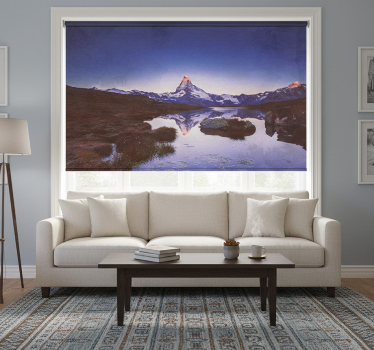 Het rolgordijn woonkamer besneeuwde berg met waterreflectie rolgordijn woonkamer is niet alleen functioneel, maar ook een prachtige decoratieve toevoeging aan uw interieur. Het biedt niet alleen privacy en bescherming tegen direct zonlicht, maar voegt ook een vleugje elegantie toe aan elke ruimte. Dit rolgordijn maakt het mogelijk om de kamertemperatuur te regelen en creëert een gezellige sfeer, ideaal voor zowel ontspanning als sociale bijeenkomsten. Laat uw woonkamer stralen met dit unieke ontwerp!