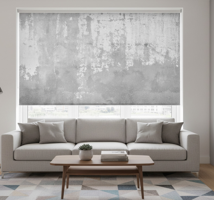 Rolgordijn woonkamer betonlook fotobehang