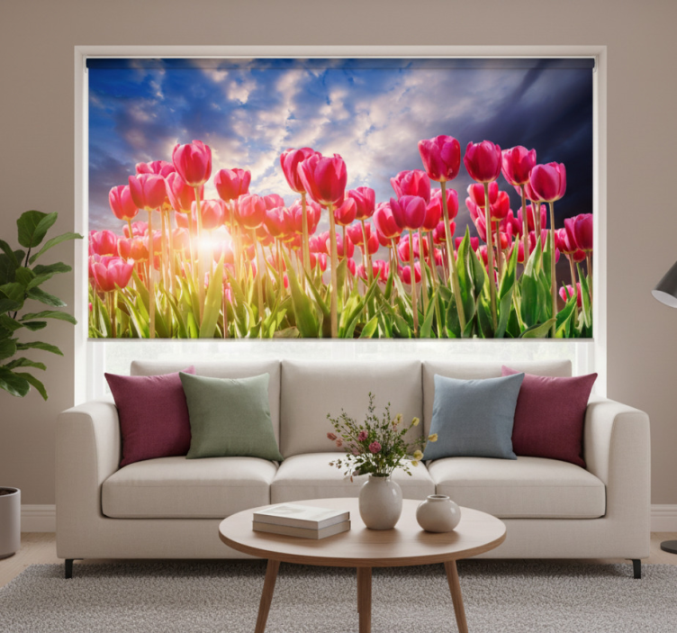 Rolgordijn woonkamer bloeiende zonsondergang