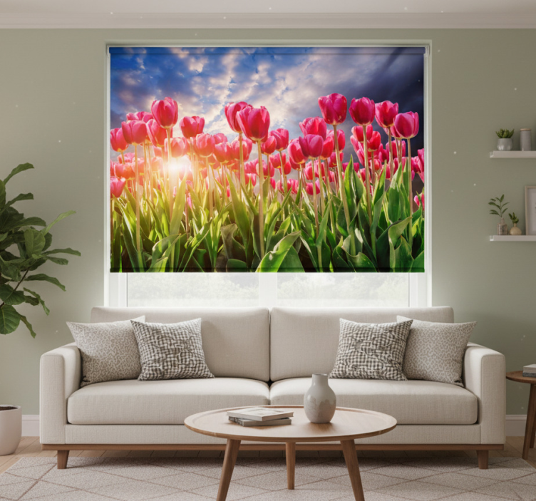 Rolgordijn woonkamer bloemige zonsondergang