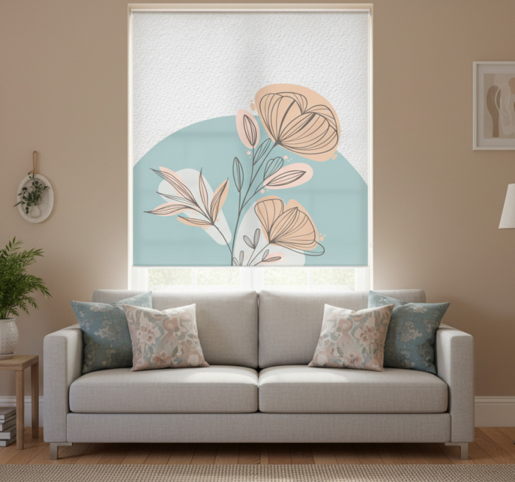Rolgordijn woonkamer bloesemschilderij