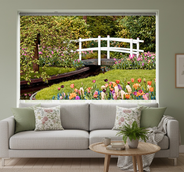 Rolgordijn woonkamer cottagecore groene brug