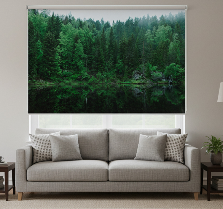 Rolgordijn woonkamer een bos bij het meer