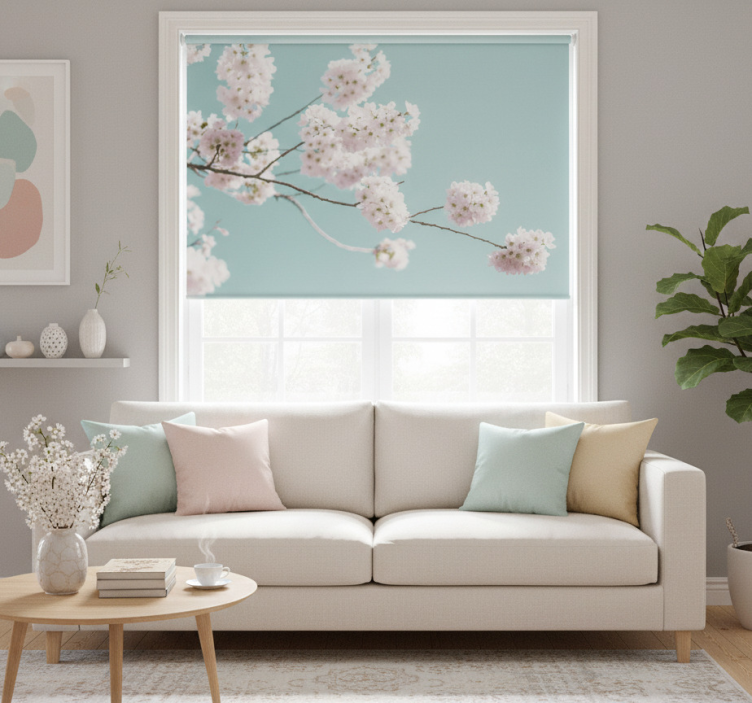 Rolgordijn woonkamer elegant en vrouwelijk bloemenontwerp