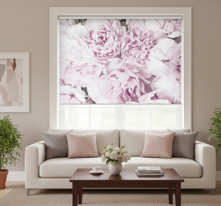 Rolgordijn woonkamer elegant ontwerp van roze pioenen