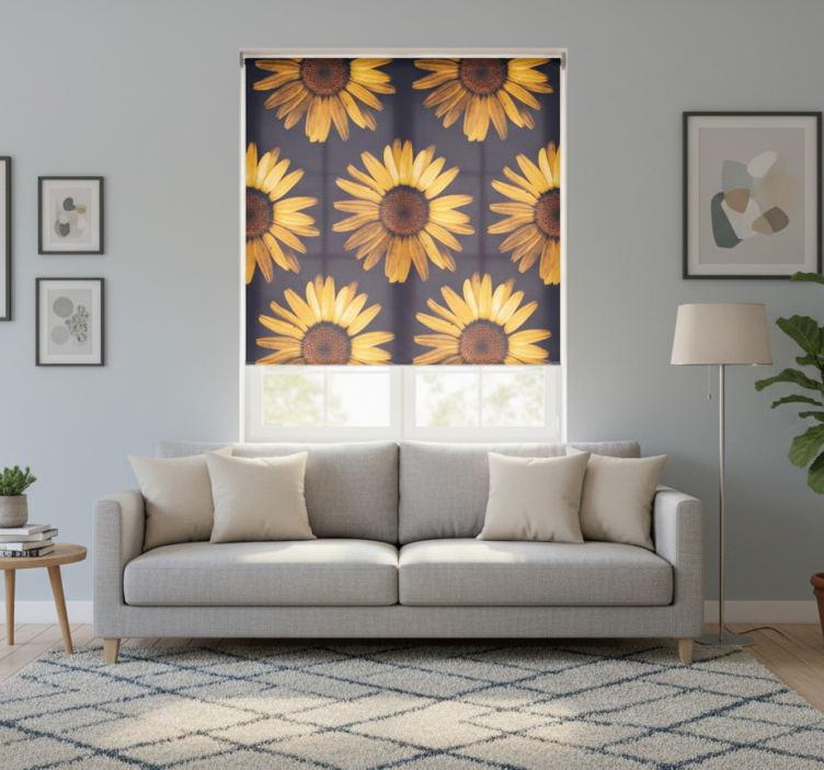Rolgordijn woonkamer gele zonnebloem