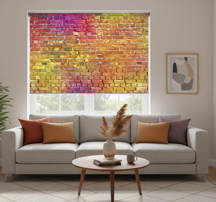 Referentienummer: E8891Ontdek het rolgordijn woonkamer geschilderde baksteen kunst