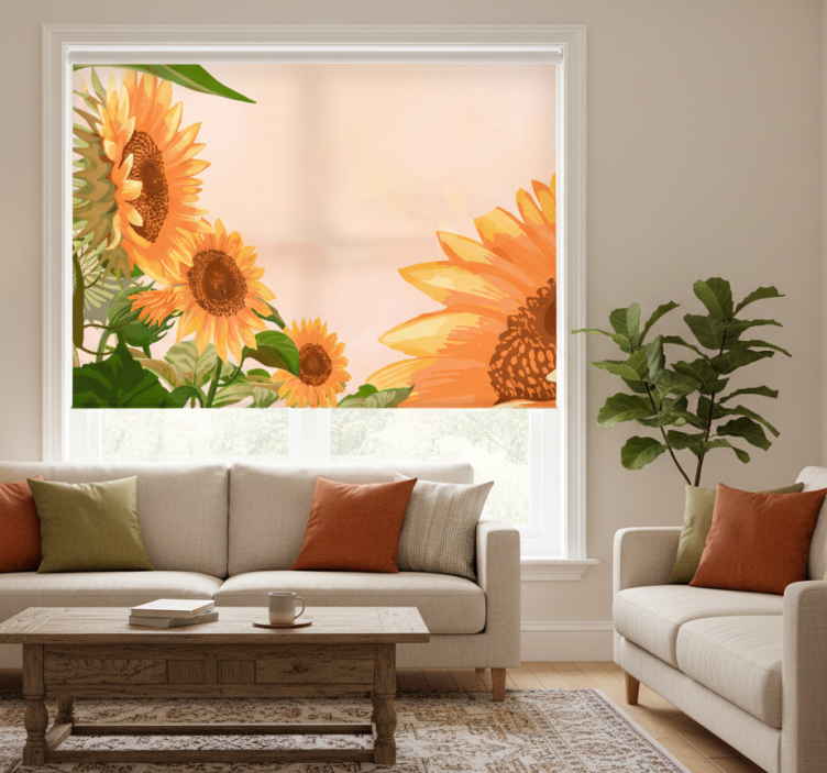 Rolgordijn woonkamer geschilderde zonnebloemen