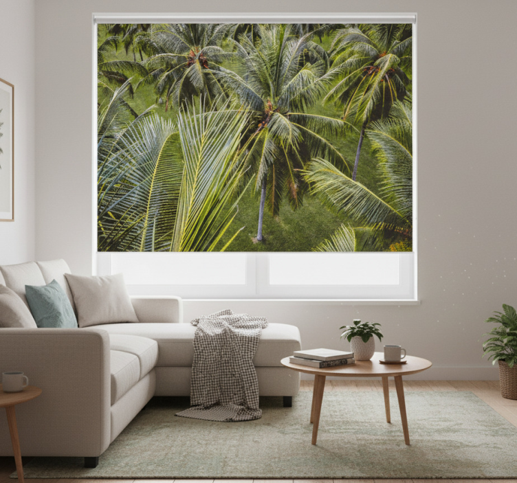 Rolgordijn woonkamer groen palmboombos landschap