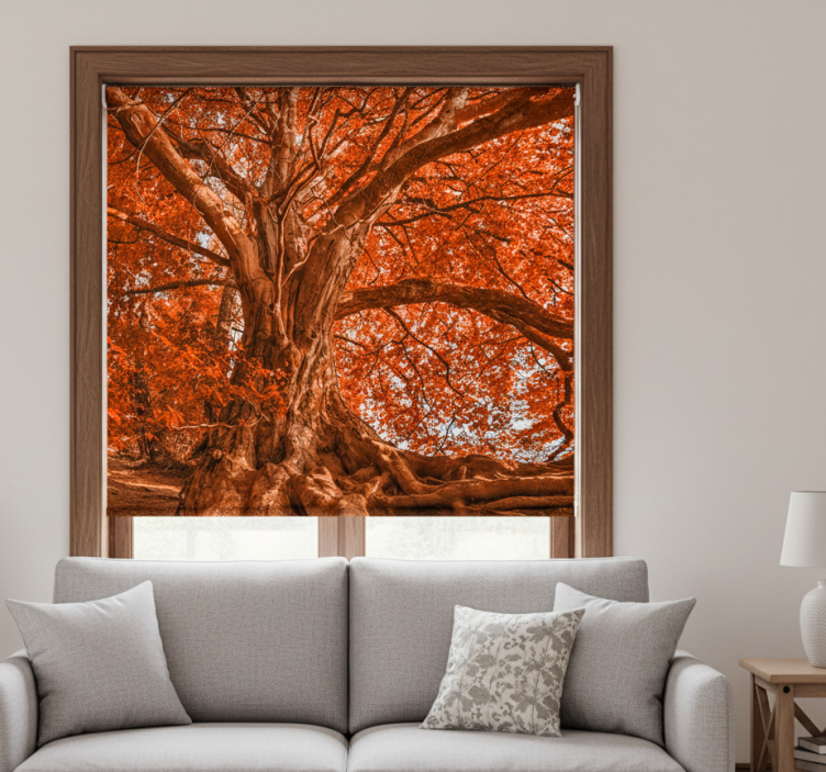 Rolgordijn woonkamer grote mooie herfstboom