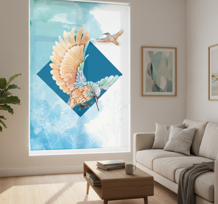 Rolgordijn woonkamer ijsvogels