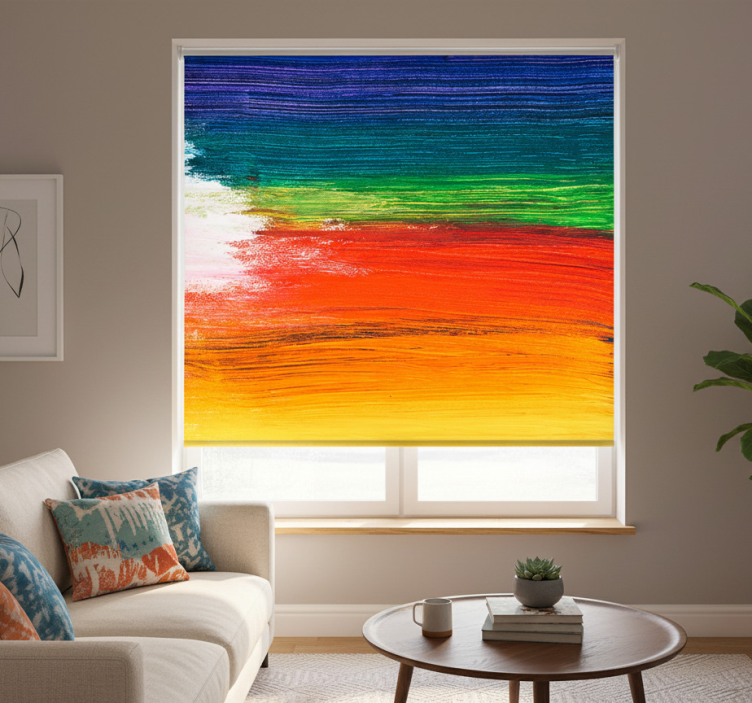 Een rolgordijn woonkamer in regenboogkleur rolgordijn woonkamer voegt niet alleen kleur toe aan uw interieur, maar creëert ook een levendige en uitnodigende sfeer. Dit rolgordijn is perfect voor het accentueren van uw persoonlijke stijl en het verbeteren van de algehele uitstraling van uw woonkamer. De combinatie van praktische functionaliteit en esthetische aantrekkingskracht maakt het een must-have voor elk huis. Laat uw creativiteit de vrije loop en transformeer uw woonkamer in een kleurrijke oase!