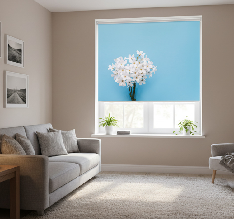 Rolgordijn woonkamer jazmin blauwe achtergrond