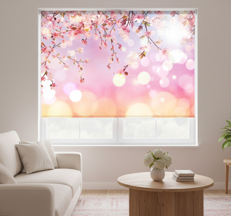 Referentienummer: E9397Rolgordijn woonkamer kersenbloesem 3d