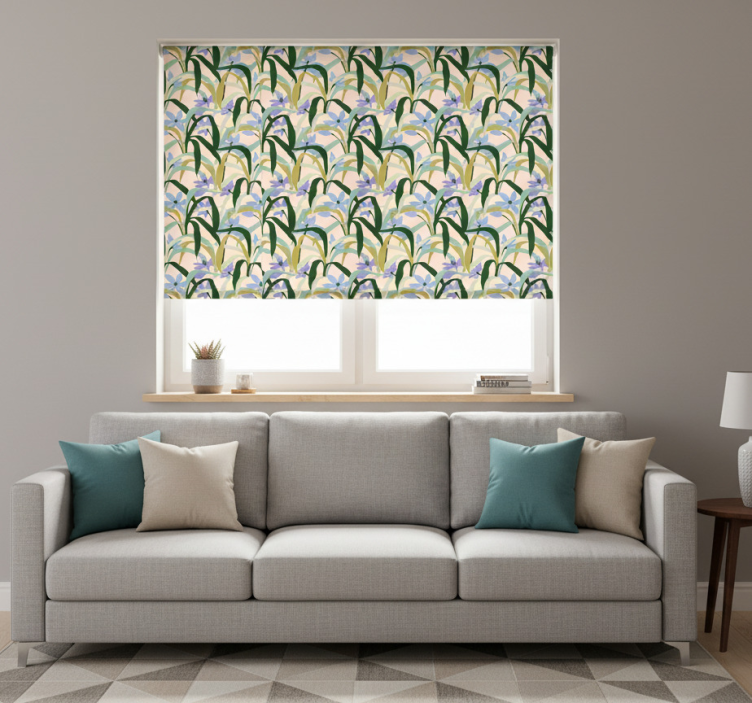 Rolgordijn woonkamer kleurrijk patroon abstracte bladeren