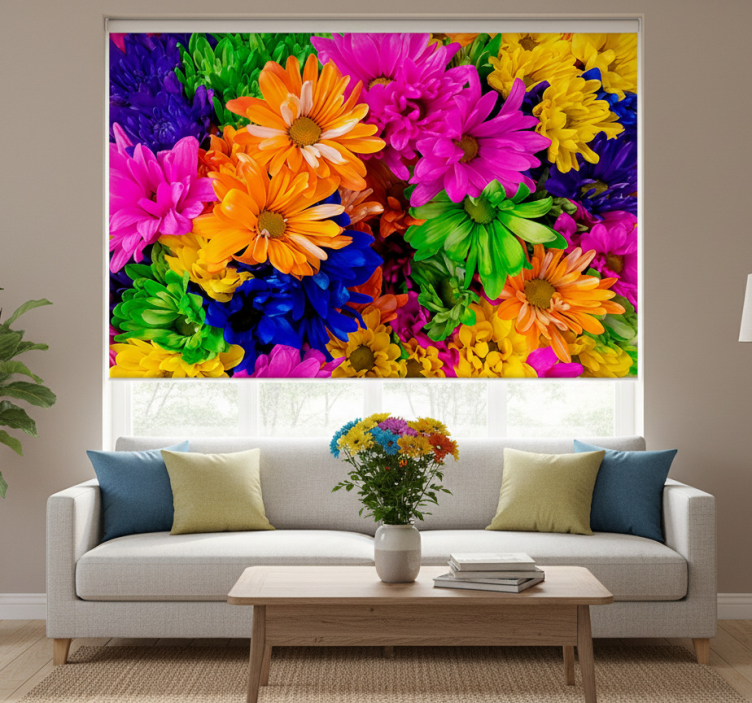 Rolgordijn woonkamer kleurrijke chrysant