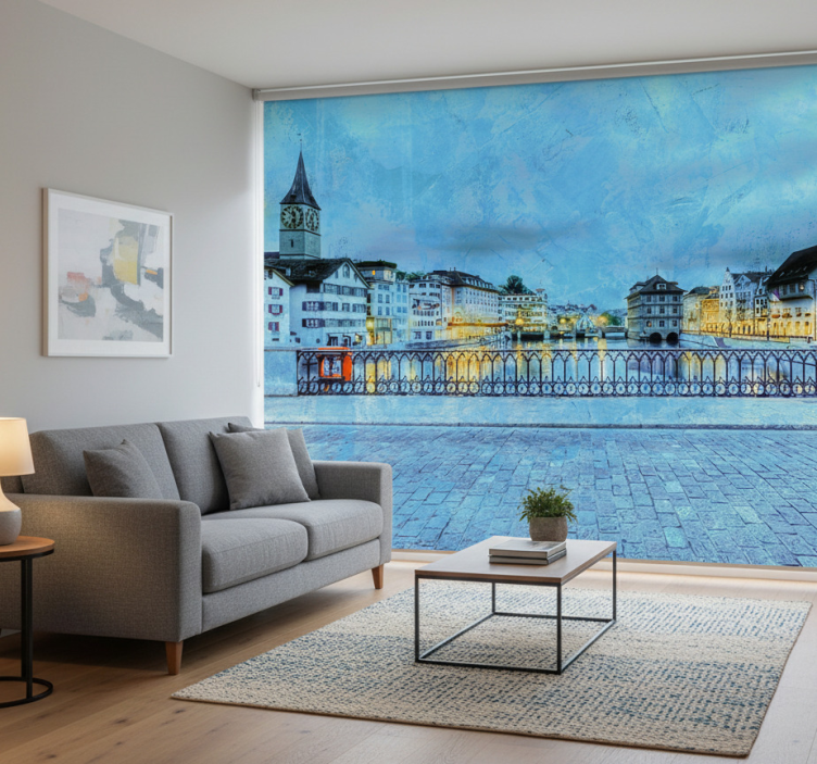 Referentienummer: E9505Rolgordijn woonkamer koude nacht op een brug in zürich