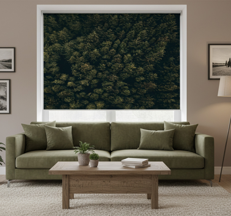 Rolgordijn woonkamer luchtfoto groene bruine dennen