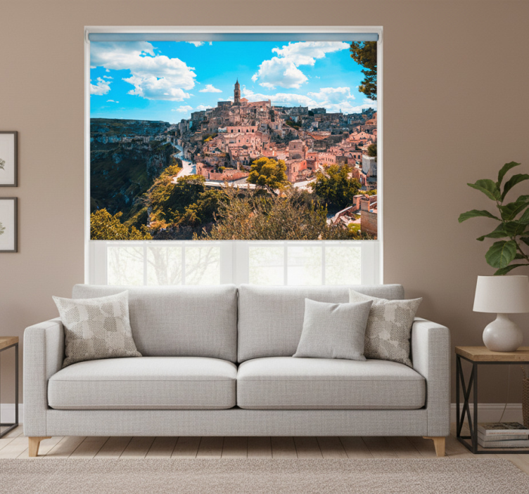 Een rolgordijn woonkamer matera stadslandschap rolgordijn woonkamer is niet alleen praktisch, maar ook een ideale decoratieve keuze voor uw ruimte! Het brengt een moderne uitstraling naar binnen met een artistiek tintje, waardoor het perfect is voor iedere interieurstijl. Dit rolgordijn voegt niet alleen kleur en karakter toe, maar het zorgt ook voor een warme en uitnodigende sfeer. Laat uw muren spreken met dit bijzondere ontwerp dat het beste van de stad in uw huis brengt!