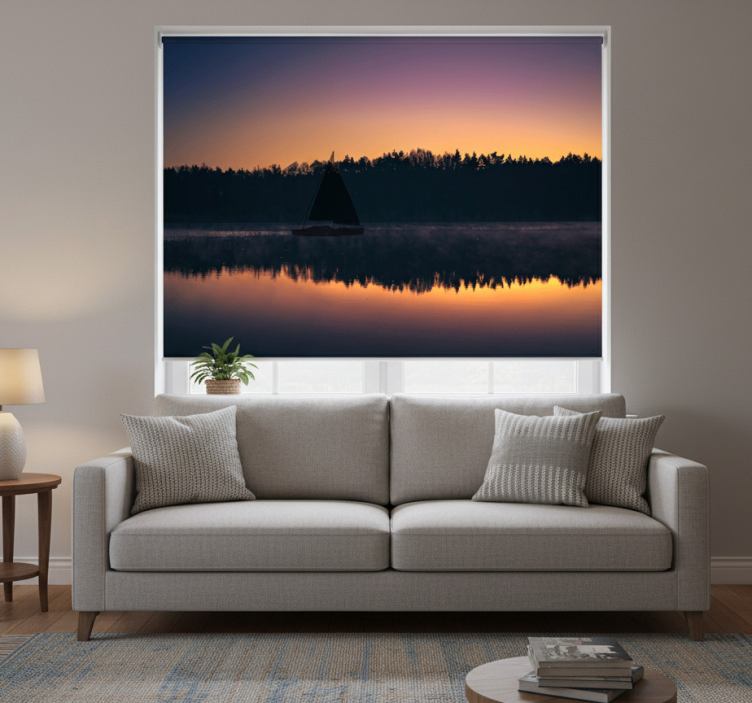 Rolgordijn woonkamer mazury zeilboot zonsondergang