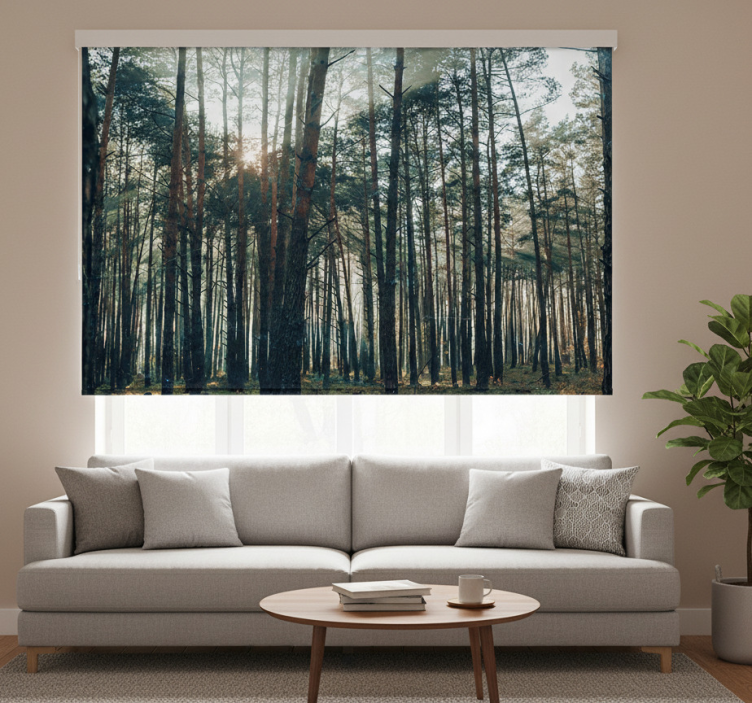 Referentienummer: E9704Rolgordijn woonkamer mooi dennenbos ontwerp