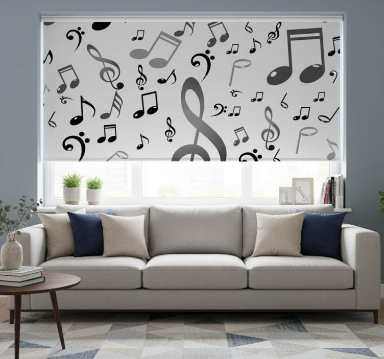 Referentienummer: E8924Introductie van het Rolgordijn Woonkamer Muzieknoten