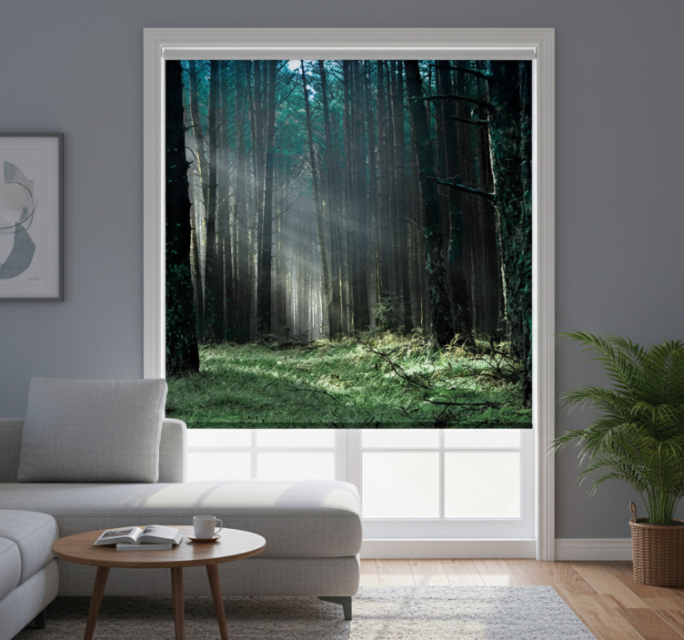 Rolgordijn woonkamer "nature" blauw nevelwoud