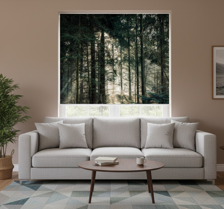 Rolgordijn woonkamer "natuur" bos met donkere tinten dag