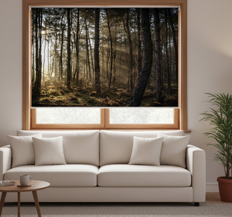 Rolgordijn woonkamer natuur zonsopgang in het bos