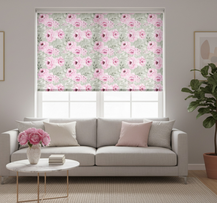 Rolgordijn woonkamer pastel kleur pioenrozen