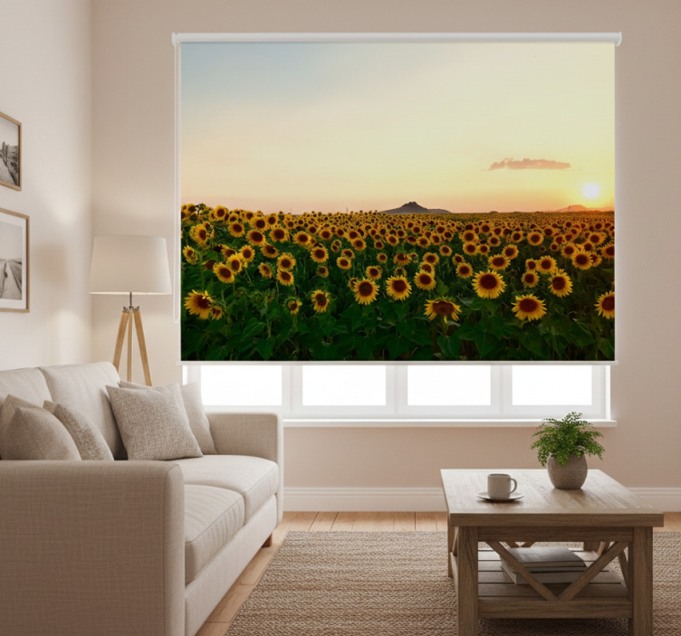 Rolgordijn woonkamer prachtig landschap met bloemen
