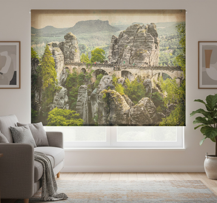 Het rolgordijn woonkamer prachtige stenen brug in de bergen rolgordijn woonkamer biedt de perfecte balans tussen stijl en praktische voordelen. Dit rolgordijn is niet alleen een decoratief element, maar ook een slim hulpmiddel om de lichtinval te regelen en privacy te waarborgen. Het unieke ontwerp voegt karakter toe aan uw ruimte en zorgt ervoor dat uw woonkamer een warme en uitnodigende uitstraling heeft. Laat uw ruimte stralen met dit prachtige rolgordijn!
