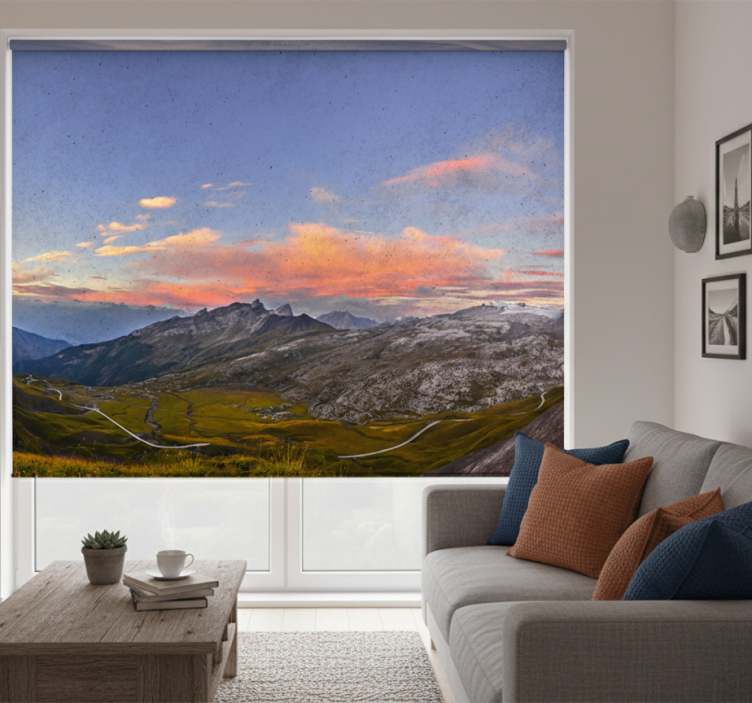 Het rolgordijn woonkamer prachtige zonsondergang in de bergen is een schitterende toevoeging aan uw interieur. Met zijn betoverende ontwerp, dat de schoonheid van een zonsondergang in de bergen vastlegt, creëert het een warme en uitnodigende sfeer. Dit rolgordijn is niet alleen een praktische oplossing voor het reguleren van licht en privacy, maar ook een stijlvol element dat de decoratie van uw woonkamer naar een hoger niveau tilt. Laat uw muren spreken met de prachtige kleuren en de serene uitstraling van dit unieke rolgordijn!