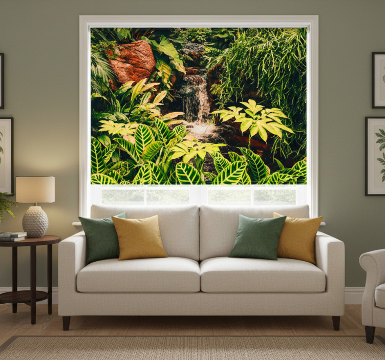Een rolgordijn woonkamer regenwoud en bladeren landschap rolgordijn woonkamer is niet alleen een praktische oplossing voor het reguleren van licht en privacy, maar ook een stijlvol decoratieve aanvulling op uw interieur. Dit rolgordijn transformeert uw ruimte door een natuurlijke uitstraling te geven die rust en eenvoud uitstraalt. Het voegt een gevoel van verbinding met de natuur toe, waardoor uw woonkamer uitnodigend en warm aanvoelt. Kies voor dit rolgordijn en laat uw creativiteit de vrije loop bij het inrichten van uw huis!