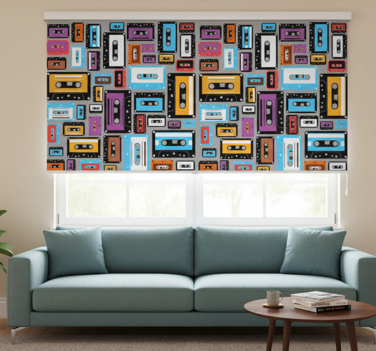 Referentienummer: E9211Rolgordijn woonkamer retro 80s cassette tape patroon