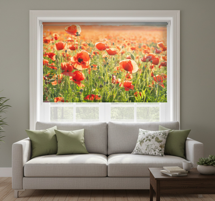 Een rolgordijn woonkamer rode klaprozen op een zonnig veld rolgordijn woonkamer is meer dan alleen een raamdecoratie; het transformeert de sfeer van uw ruimte. De levendige kleuren en het unieke ontwerp creëren een uitnodigende ambiance, waardoor het de aandacht trekt van gasten en een gespreksonderwerp vormt. Bovendien biedt het rolgordijn privacy en controle over de lichtinval, zodat u kunt genieten van uw ruimte op elk moment van de dag. Laat uw woonkamer stralen met dit prachtige rolgordijn en maak elke dag zonnig!