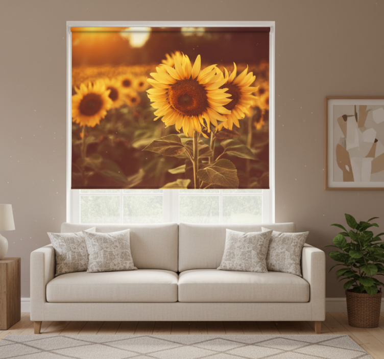 Rolgordijn woonkamer romantisch zonnebloemveld